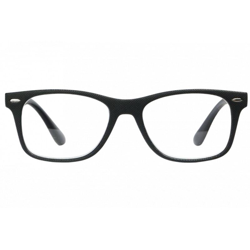 Ces lunettes de lecture pour homme et femme réinventent le grand classique de la monture noire. Ici, pas de plastique lisse ordinaire : la face et les branches présentent une texture micro-gravée en nid d'abeille. Ce fini technique donne un aspect mat et profond à la monture, captant la lumière de façon subtile. Les rivets argentés apportent un contraste brillant qui souligne la qualité de finition de ces loupes de lecture haut de gamme à prix abordable.